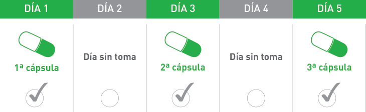 1 cápsula tomada en los días 1, 3, y 5 proporciona hasta 3 años de protección contra la fiebre tifoidea. La vacunación completa consiste en la ingestión de tres cápsulas como se describe anteriormente. Puede que no se alcance la respuesta inmunológica óptima si no se completa el calendario de vacunación en su totalidad.